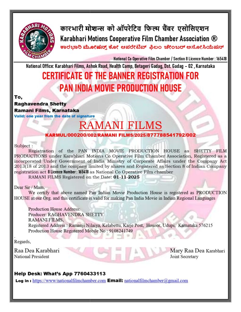 Registered Address : Ramanji Nilaiya, Kelabettu, Karje Post,  Hosoor, Udupi,  Karnataka 576215 Production House Registered Mobile No : 9108241749
